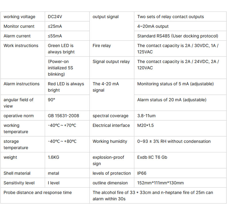 | Three-Band Infrared Technology | Enhanced accuracy in detecting flames, reducing false alarms. |